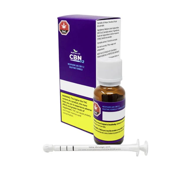 MediPharm Labs CBN1:2 is a pharma-quality high-CBN Nighttime Formula containing 10mg/ml of CBN and 20mg/ml of THC made using refined CBN material produced at MediPharm Labs using strict manufacturing standards to bring you the highest quality and purity.This high-quality formulated oil has a subtle cannabis flavour. The coconut/palm-based MCT carrier oil has 10mg/g of CBN per ml to 20mg/g of THC per ml and 300mg total of CBN and 600mg of THC per 30ml bottle.