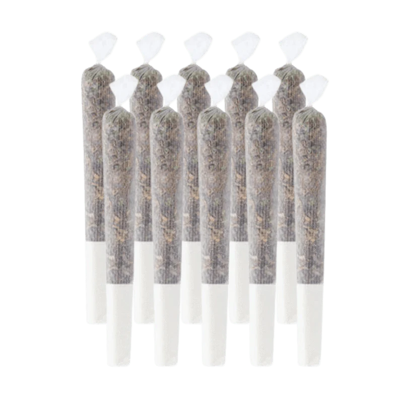 Pineapple Haze brings classic Super Silver Haze traits of a potent sativa, but with an added touch only Pineapple Buds can provide. By crossing this outstanding genetic with Pineapple Tart, the flavour profile gets an added mouth-watering, creamy, pineapple piña colada taste. The flowers are fluffy and bright green with orange pistils and have a thick frosty coating of platinum crystal trichomes. This cultivar is crafted in-house and rolled by hand, using only freshly milled flower. Dominant terpenes include Pinene, Myrcene, and Limonene.