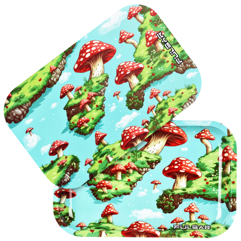 Pulsar Floating Mushrooms Metal Rolling Tray w/ Lid